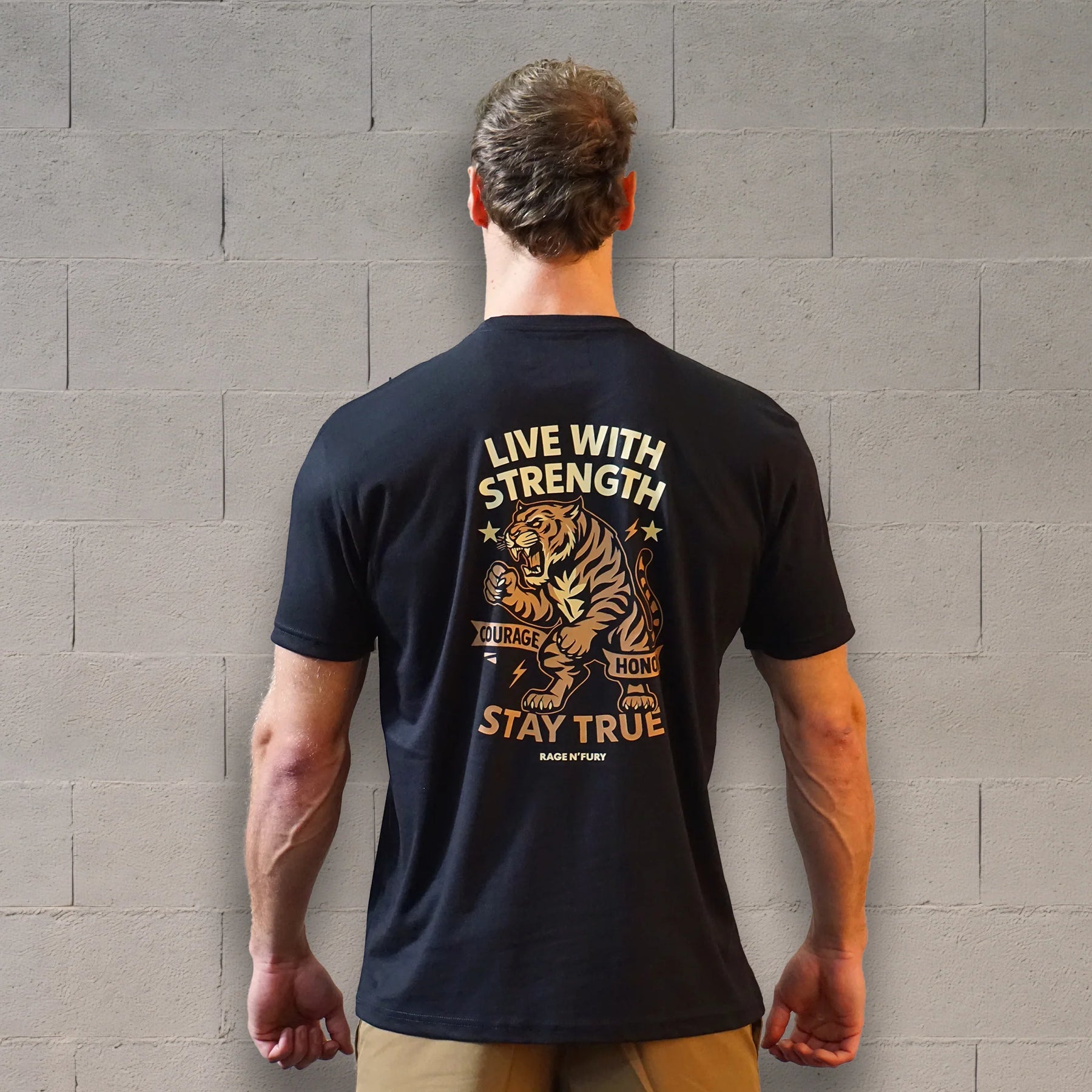 Courage, honneur, aucune rep trichée. Le tigre sur ton dos te rappelle le deal : tu peux rater, jamais tricher. Tu restes fidèle à tes standards même quand les jambes brûlent. Honor : chaque rep est propre, ou elle ne compte pas.